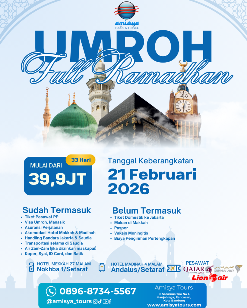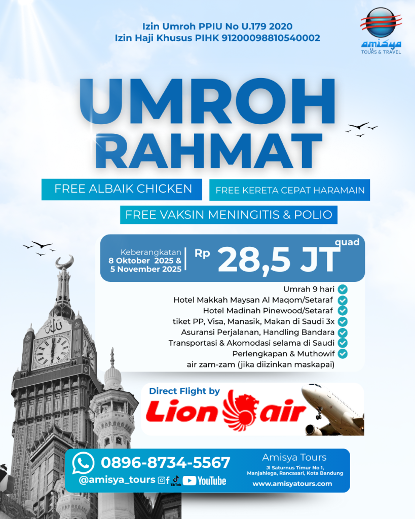 Serta Amisya Tour & Travel telah memiliki izin Resmi dari Kementrian Agama RI untuk penyelenggara Umroh